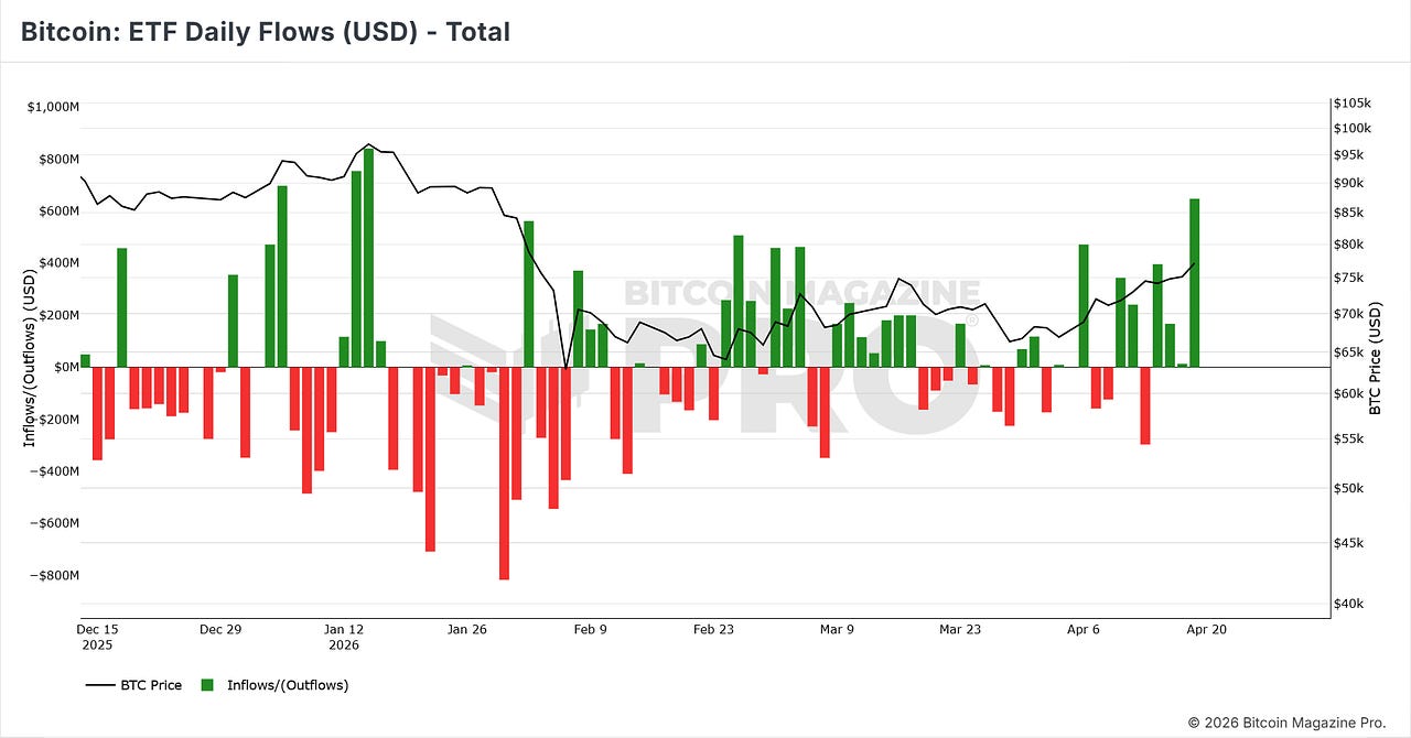 Nearly $1B in ETF inflows meets relentless buying from Michael Saylor, as Bitcoin breaks out and eyes the 200-day average.
