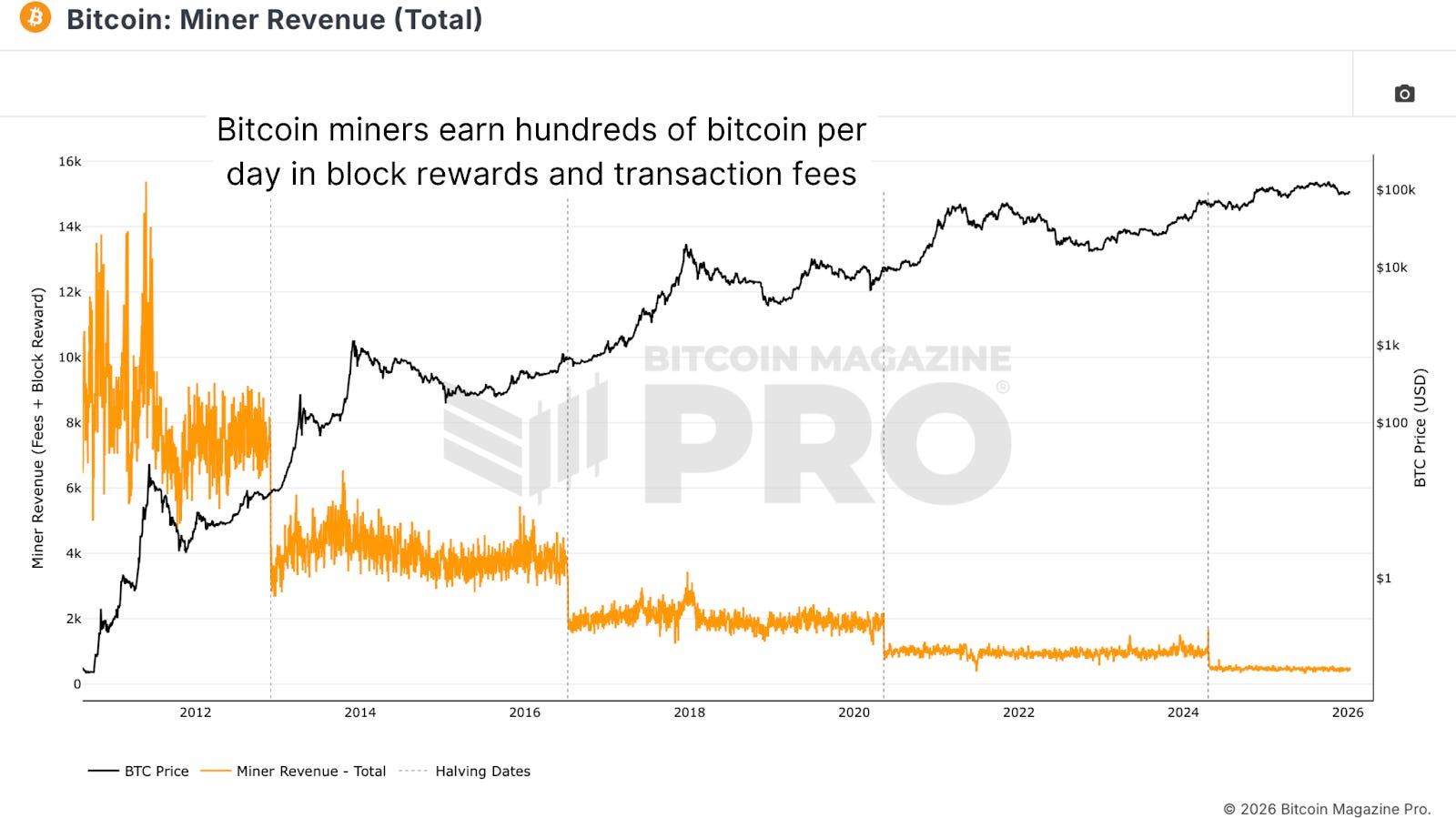 Figure 2: The impact of halving events on Bitcoin Miner Revenue.