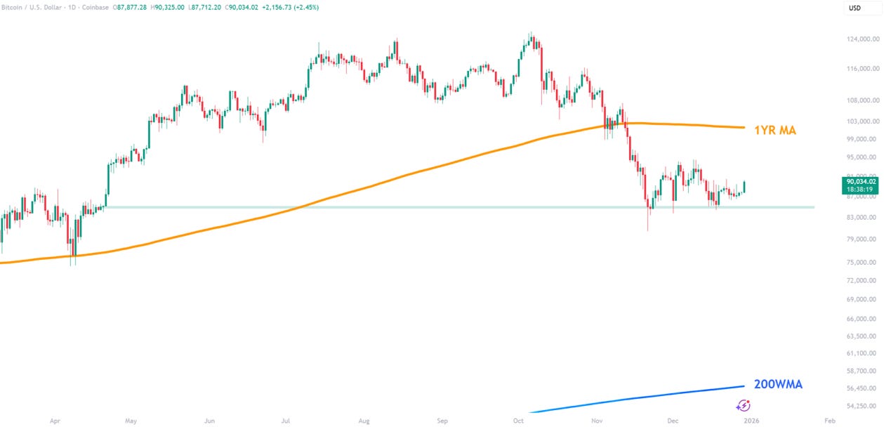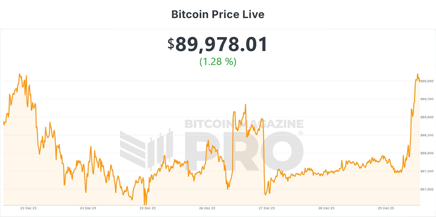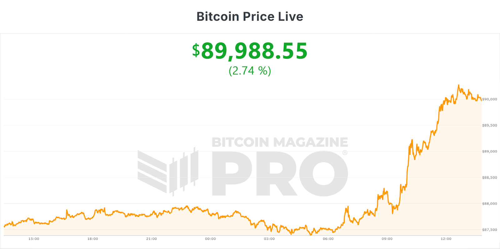 Bitcoin has experienced a move up over the past few hours, with price up +2.5% over the past 24hrs. The rally came from $87,500 up to $90,000.