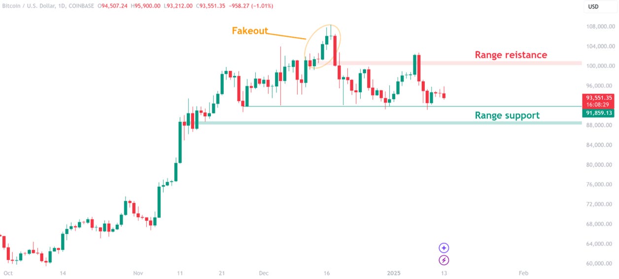 Patience may be required over the next week or two until there is a clear catalyst in the market to push $BTC up out of the range. Will the Trump inauguration on January 20th provide that boost for $BTC?