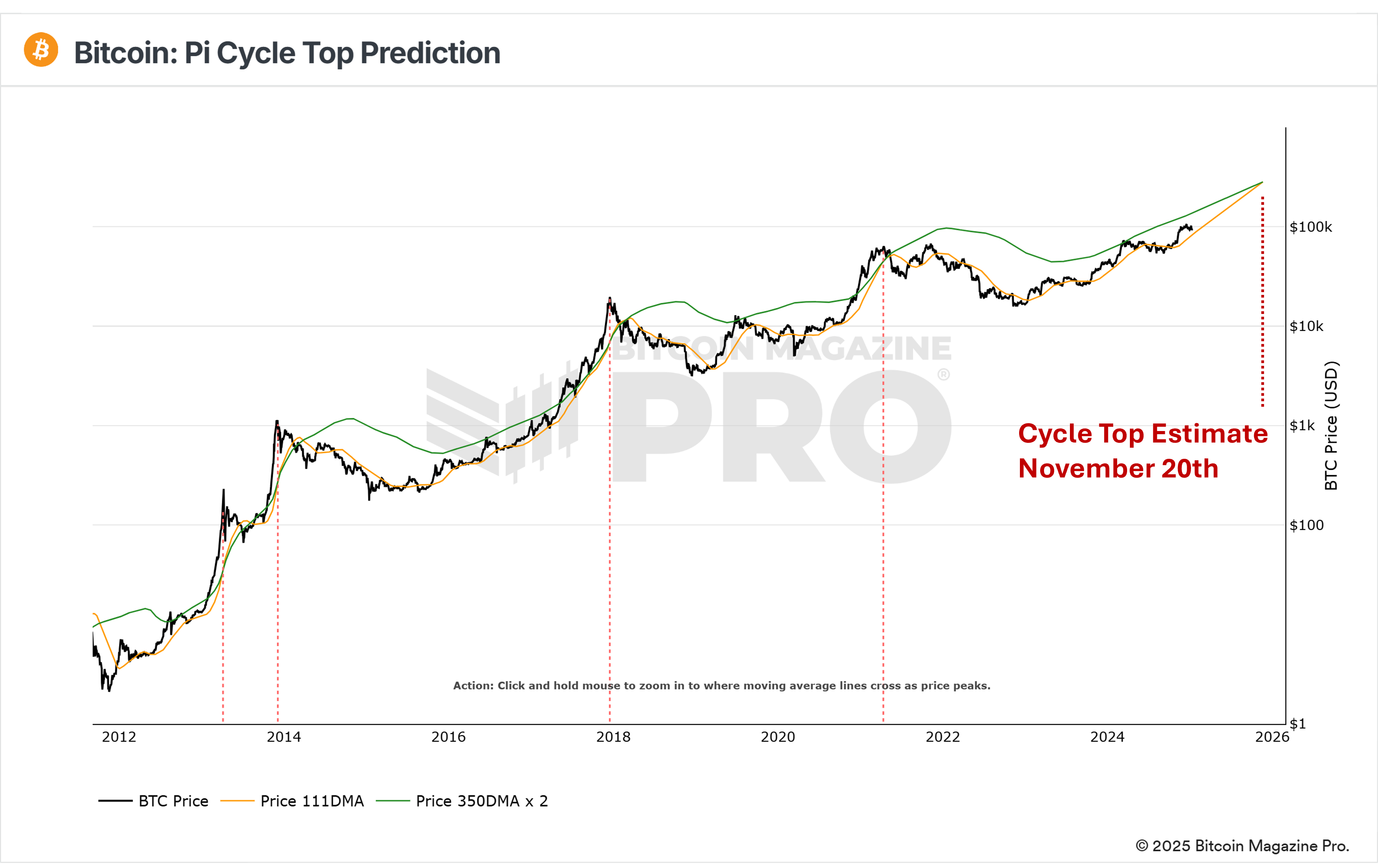 The Pi Cycle Top Prediction tool is currently estimating November 20th for the cycle top.