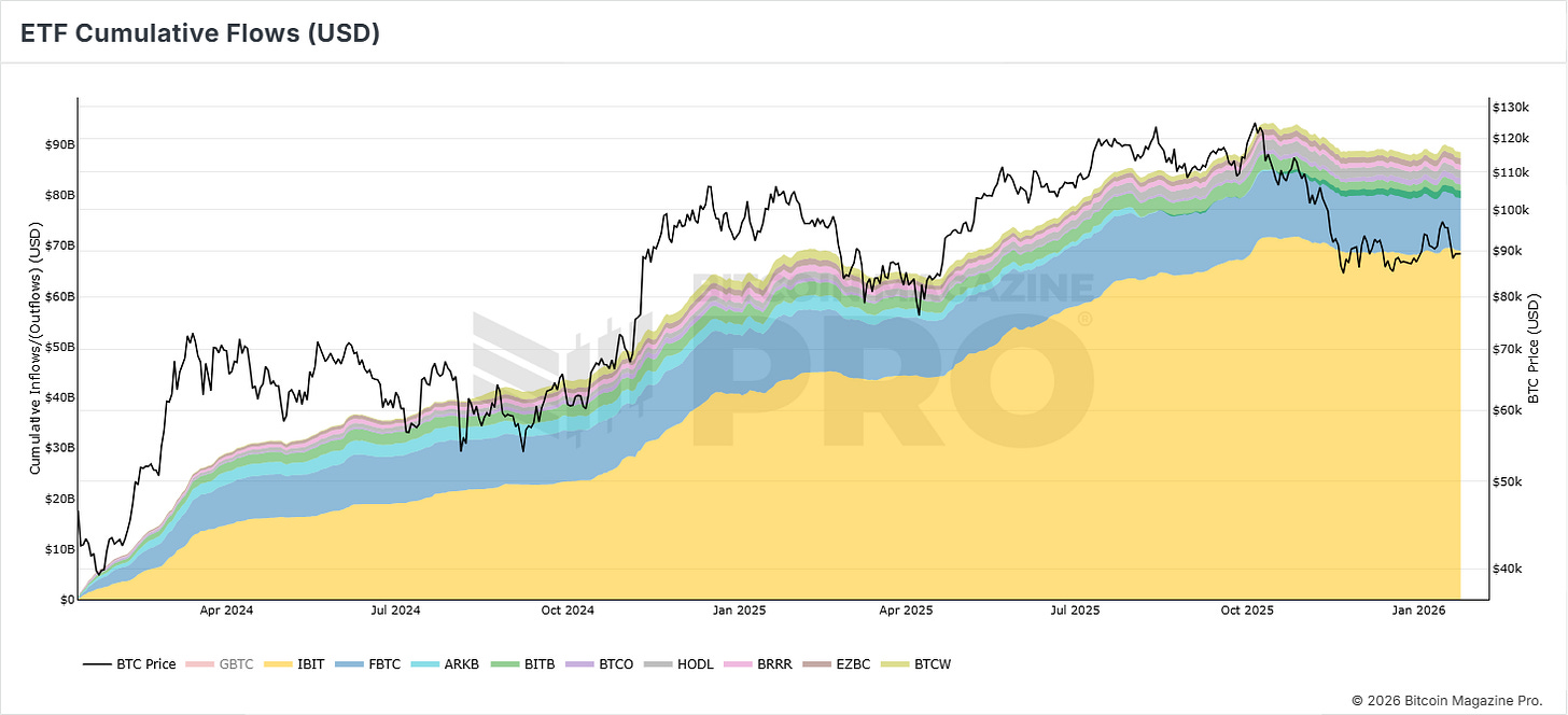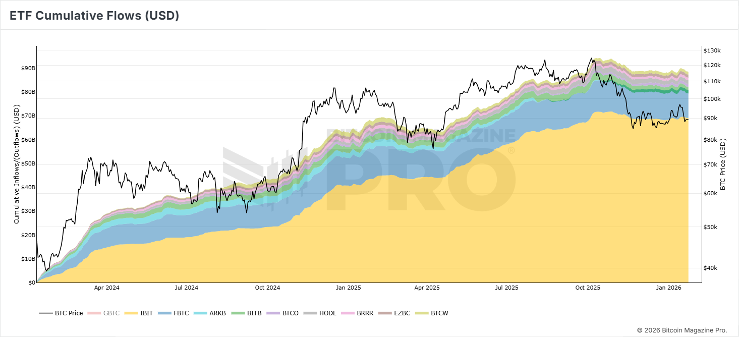 IBIT alone holds nearly $70 billion in assets, making its behavior a useful proxy for institutional sentiment.