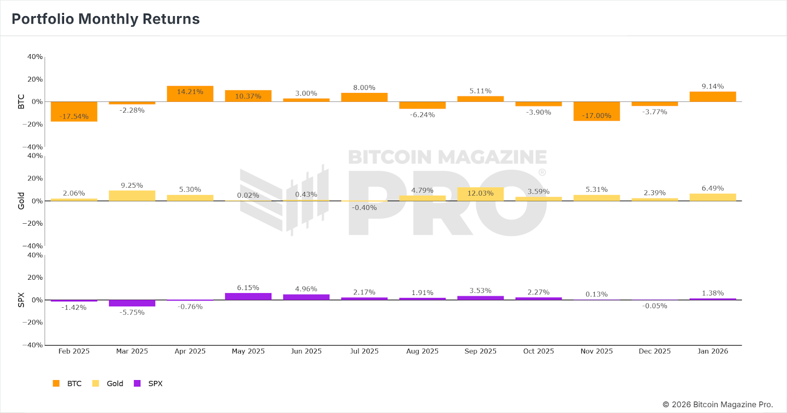 Monthly Performance: Bitcoin vs Gold vs Equities