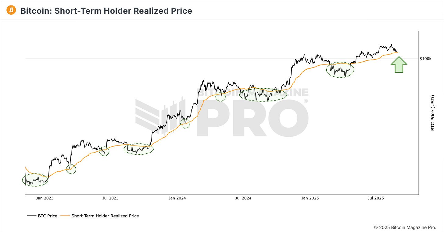 The STH Realized Price represents the average cost basis of newer market participants (coins held <155 days). In bull markets, price dipping into this level often highlights a buy-the-dip opportunity, as short-term holders may be capitulating as BTC price drops below their average buy-in price.