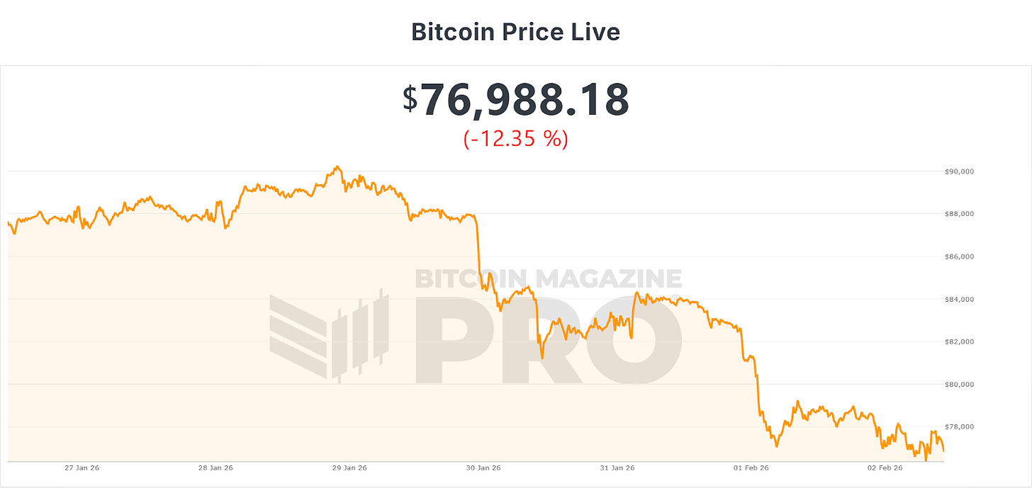 Bitcoin has tumbled hard this week, particularly over the past few days, dropping more than 12%. BTC has now dropped below $80,000 and is trying to stabilize at $76,988.