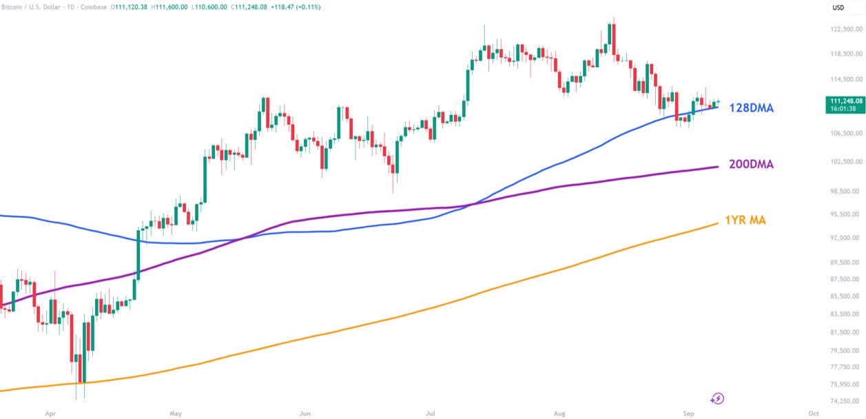 Why? BTC has managed to reclaim the 128-day moving average after briefly dropping below it last week. We have discussed in recent weeks how this moving average could be a key support level. So far, that is playing out.