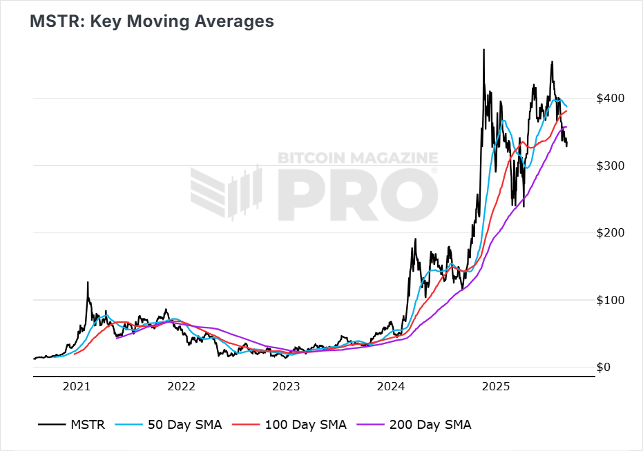 Figure 5: $MSTR is currently trading below its key moving averages.
